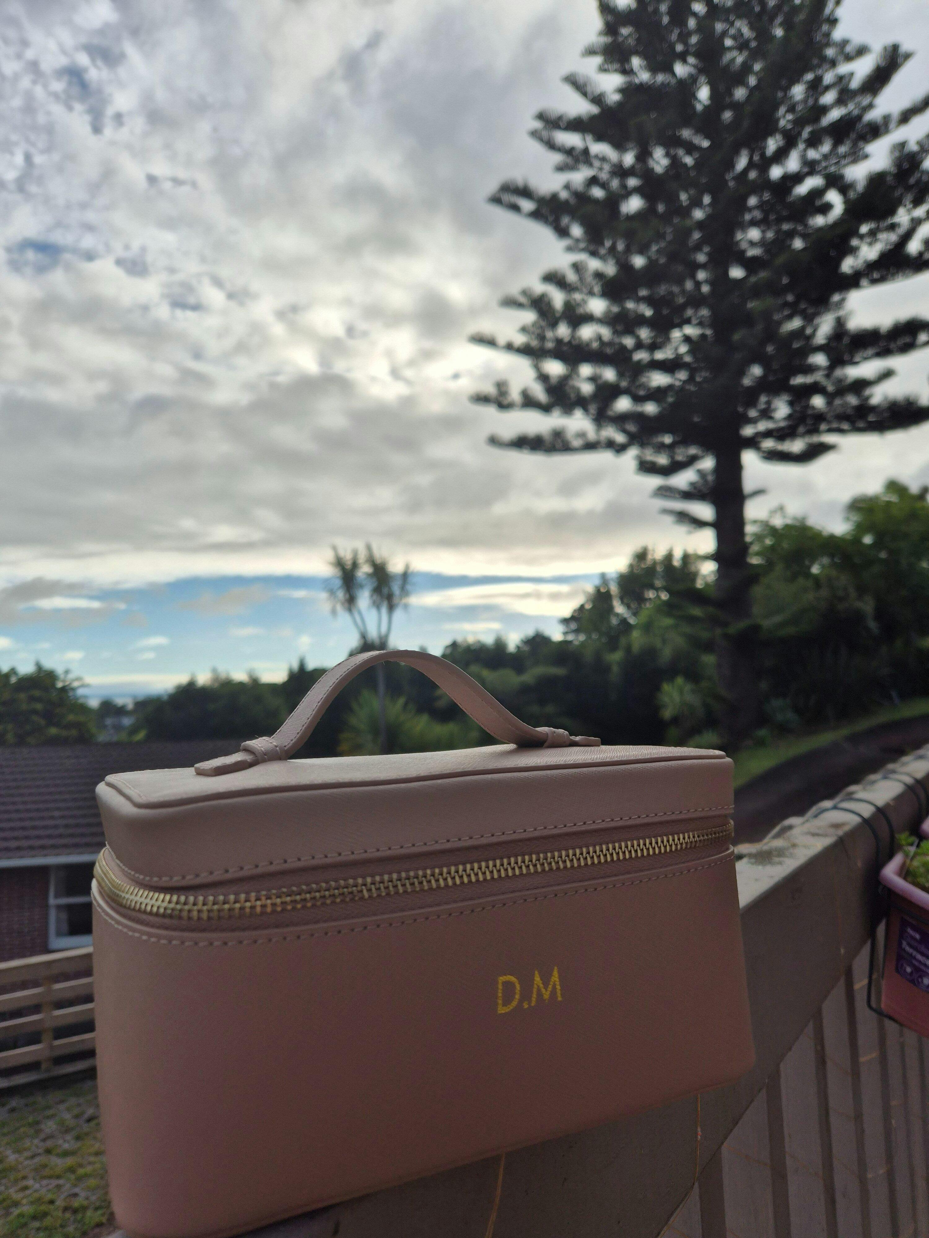 Our personalised saffiano vanity case is a refined, structured cosmetic bag crafted for those who value quality, simplicity, and timeless design. Custom embossed by hand with your initials in gold foil, each piece is made to feel personal, elevated, and truly one of a kind.